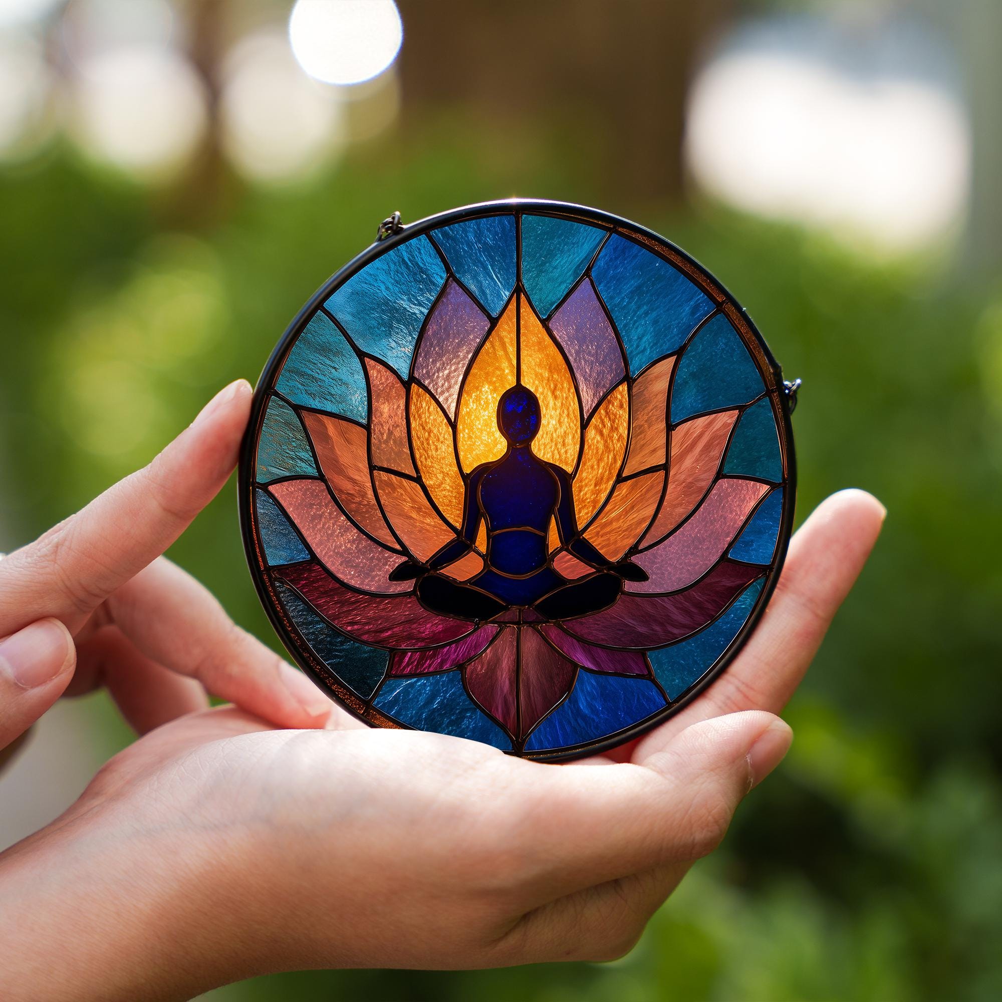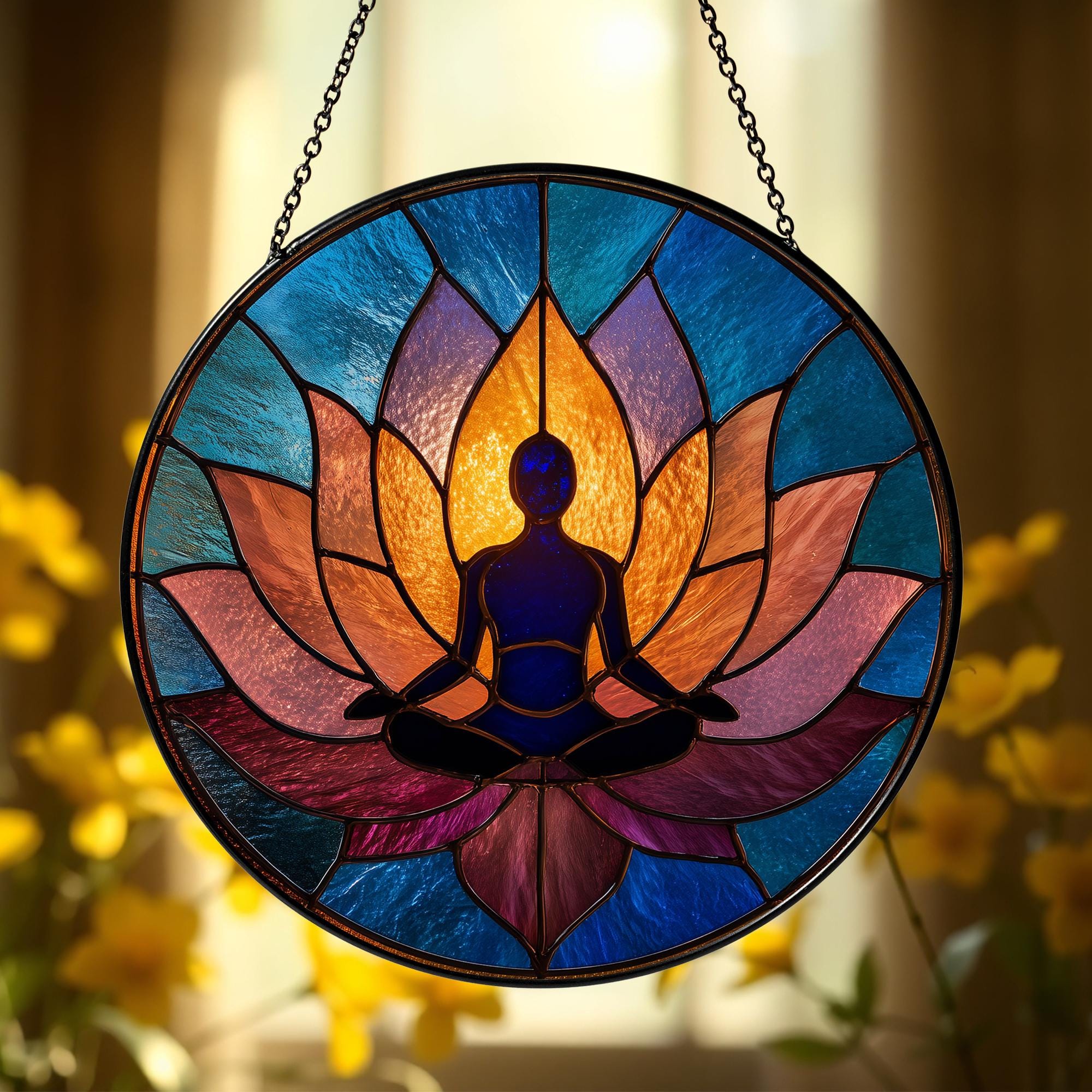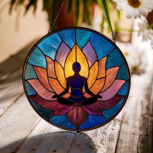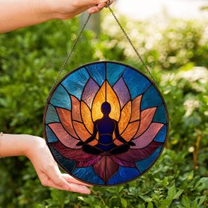 Yoga Stained Glass Suncatcher | Meditative Window Art | Zen Decor for Home or Studio | Unique Spiritual Gift | Mindful Wellness Decor